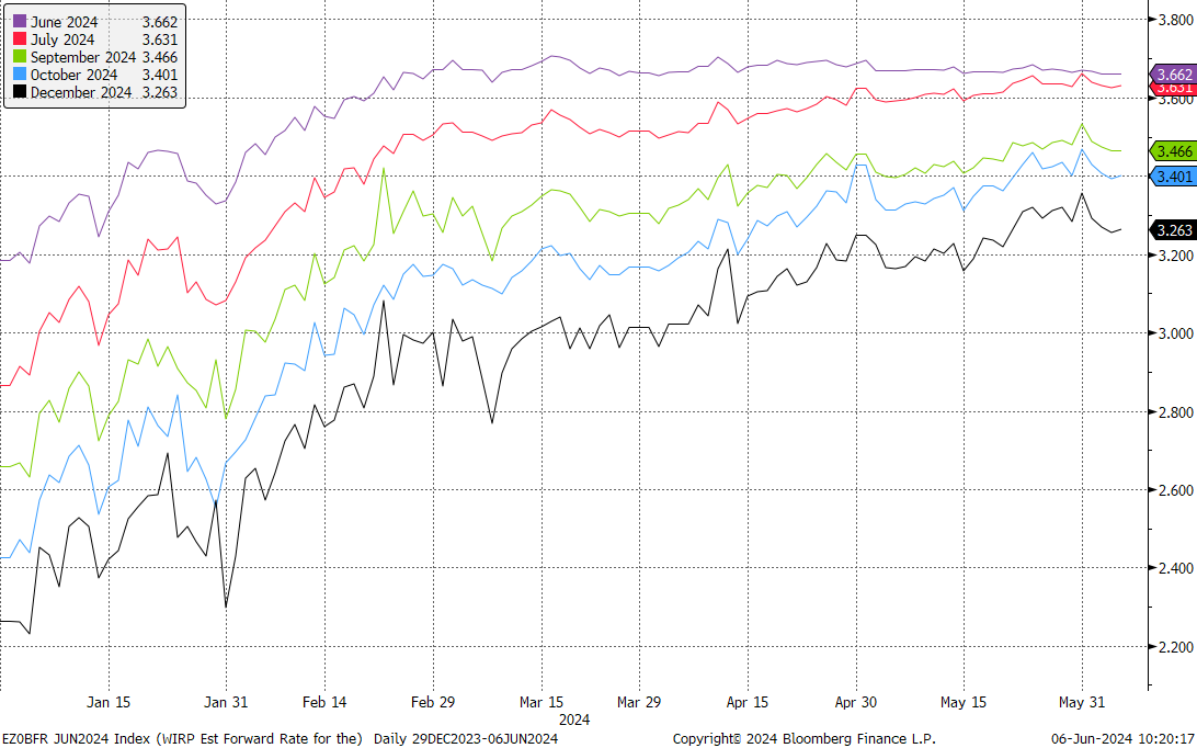 ECB staff projections will be closely watched. Another downward revision may put pressure on EUR and boosts market odds for more rate cuts in the second half of 2024. Source: ECB