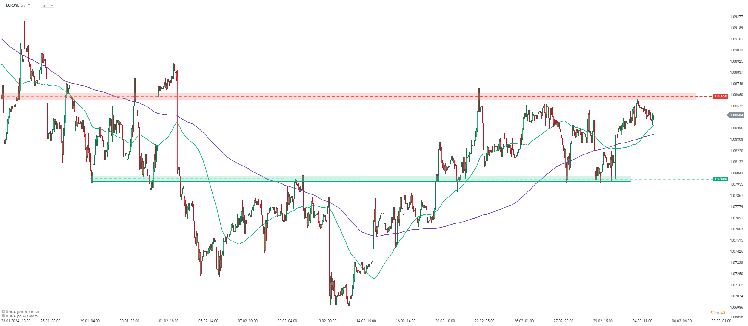 Az EUR eleinte visszafogott volt, de a francia adatok megjelenését követően erősödni kezdett. Ha megnézzük az EURUSD grafikonját H1 intervallumban, láthatjuk, hogy a pár lepattant az 50 órás mozgóátlagról (zöld vonal), és visszamászott az 1,0850-es szint fölé. Egy kulcsfontosságú, rövid távú ellenállási zóna, amelyet figyelni kell, az 1,0865-ös területen található.