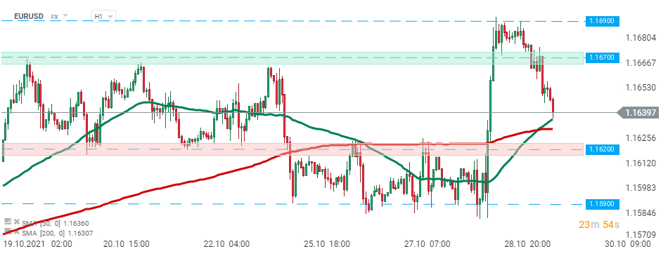 EURUSD saw a relatively small reaction to today’s data releases. The most popular currency pair continued to trade around 1.1640 level. Source: xStation5