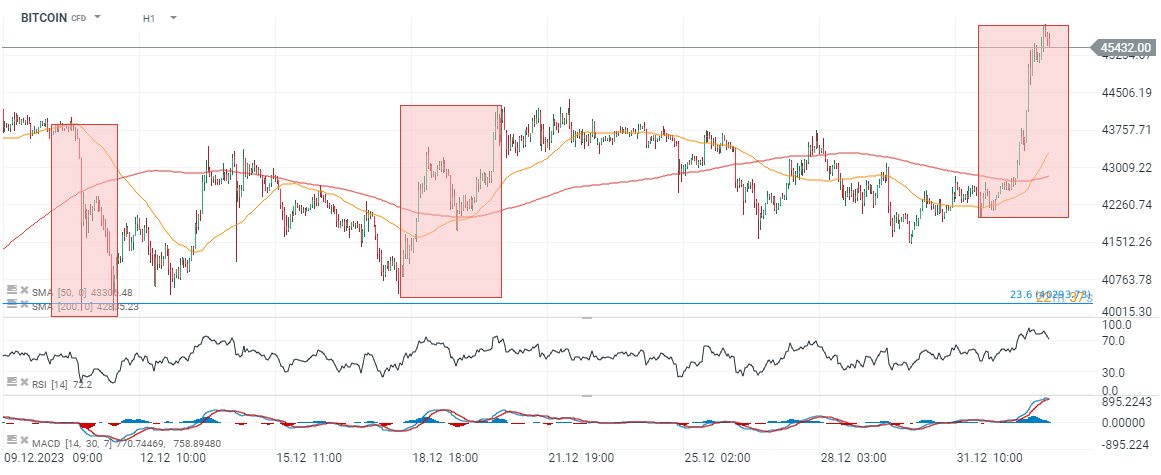 According to news reports and Reuters sources, the U.S. Securities and Exchange Commission (SEC) may not delay Jan. 10 (next Wednesday) and approve the creation of a Bitcoin ETF later this week. Bitcoin is gaining strongly at the beginning of the week, trading up to $45,700. The regaining popularity of Solana is also doing great, recording a nearly 7% rally. The beginning of 2024 is very good for crypto and even surge of US dollar doesn't stop Bitcoin rising wave.