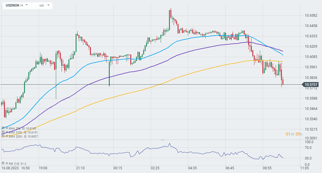 Az USDNOK pár nem reagál túl a jegybank mai döntésére, azonban enyhe lefelé irányuló mozgást figyelhetünk meg.