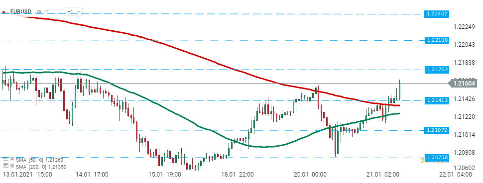 EURUSD rose after today's data releases and is heading towards the next resistance level at 1.2176. Source:xStation5
