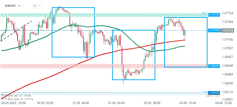 EURUSD initially currency pair fell after however buyers manage to quickly regain control and price is testing the 1.0738 level. Source: xStation5