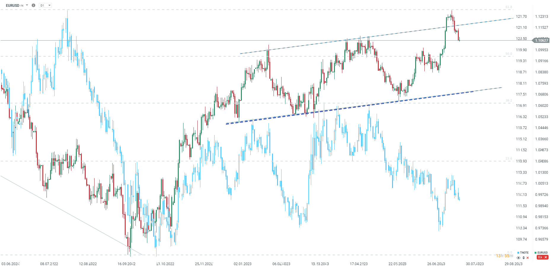 After the Ifo report and the ECB credit report, EURUSD reduces recent gains and is close to yesterday's close. Source: xStation 5