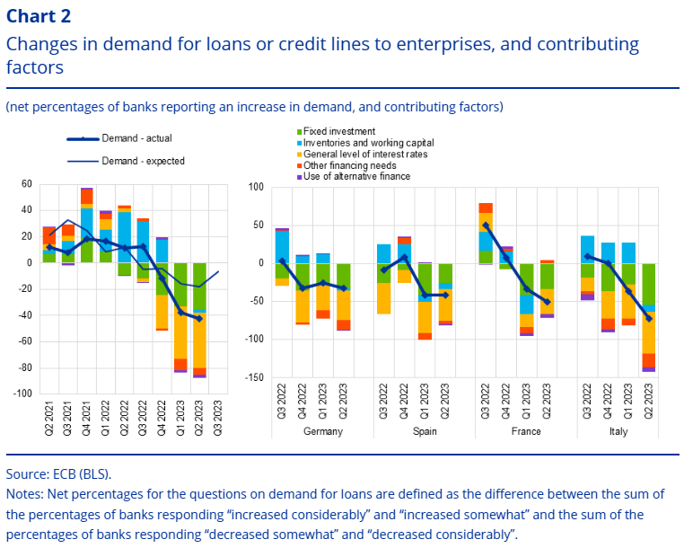 In addition, at the same time the ECB published a study on loans in the euro area. The ECB points out that banks are reporting a record drop in the demand for loans from companies. At the same time, banks are further tightening their restrictive lending policies.