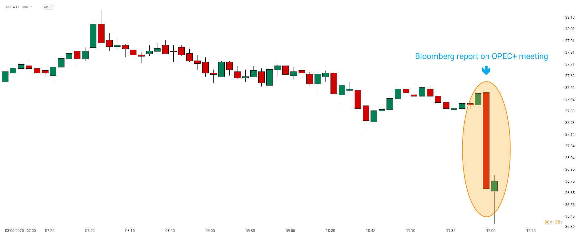 OIL.WTI dropped around $1 on Bloomberg report release. Source: xStation5
