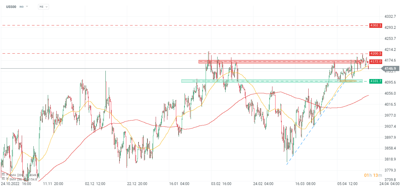 US500 declined below 4172 points form resistance level and is trading at $4147 points, alfter jobless claims data release there was no reaction in index price.