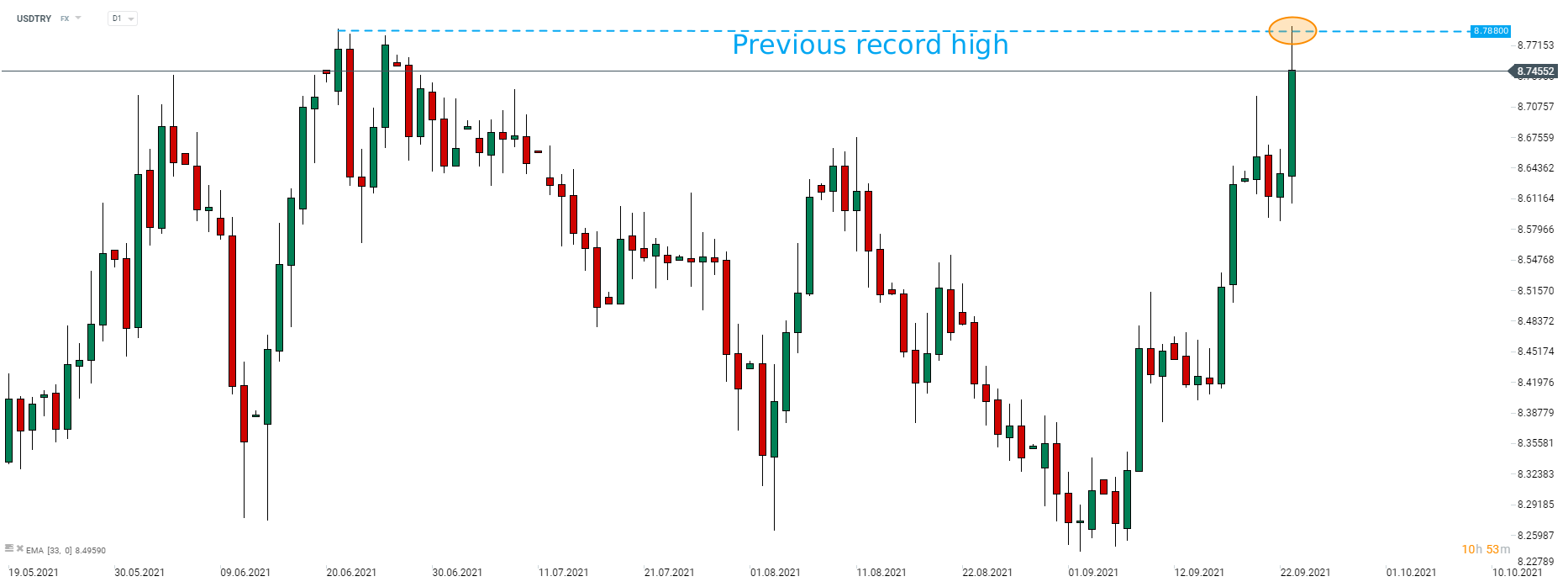 USDTRY jumped following an unexpected rate cut from CBRT and for a brief moment traded at the highest level in history. Source: xStation5