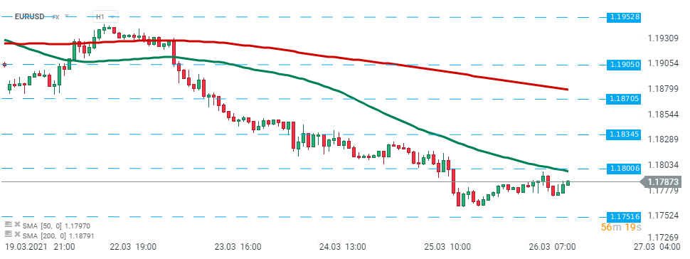 EURUSD saw relatively small reaction to today’s data releases. The most popular currency pair continued to trade around 1.1785 level. Source: xStation5