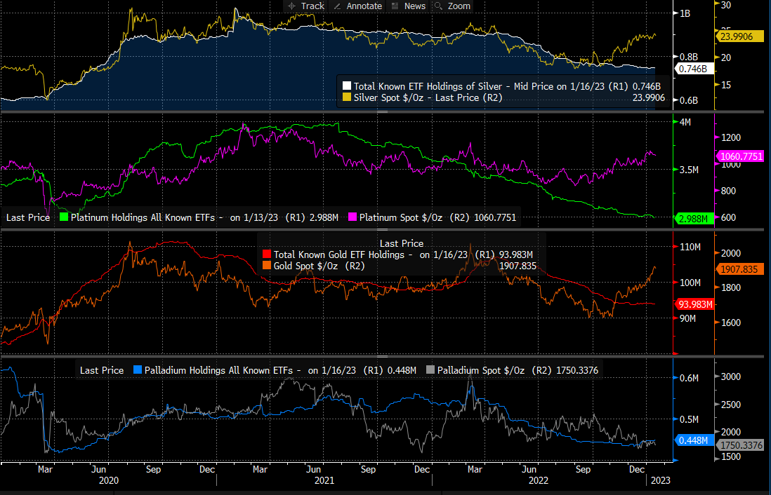 Majority of ETFs are selling out of precious metals. However, a reversal in this trend can be spotted when it comes to gold ETFs. In the case of palladium, a recovery can also be spotted but it does not necessarily point to a high demand. ETFs were unable to boost their palladium holdings earlier due to limited availability of the precious metal. Source: Bloomberg