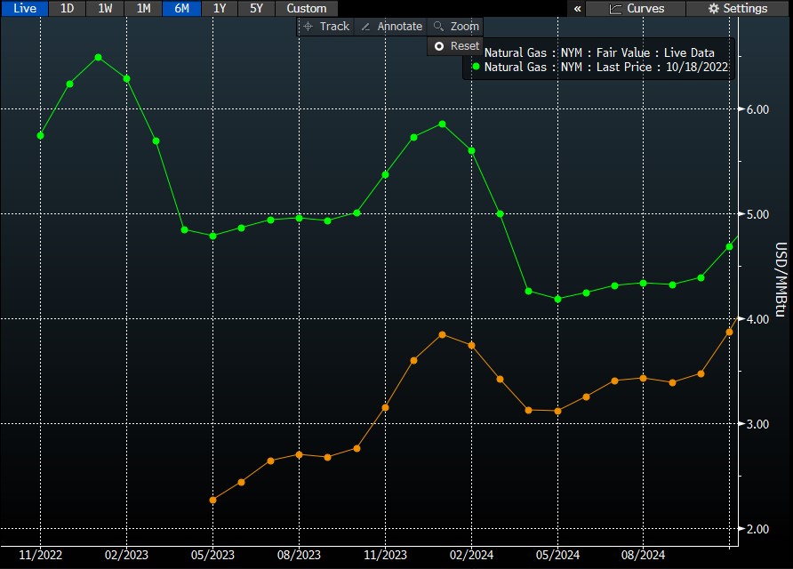Current futures curve compared to the one from 6 months ago shows not only a significantly lower price but also limited short-term demand compared to future months. Source: Bloomberg