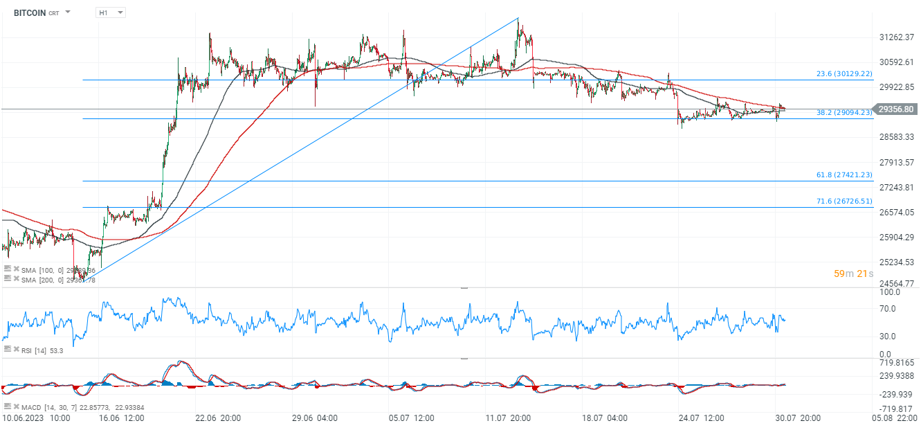 A kriptopénzpiaci hangulat a hétvége után is vegyes, mivel a befektetők nem biztosak abban, hogy a Bitcoin közelmúltbeli gyengélkedése még sokáig kitart-e. Történelmileg a kriptopénzpiacon a hosszabb, alacsonyabb árfolyam-volatilitású időszakok jelentős árreakciókat - rallyt vagy jelentős esést - előztek meg. A Bitcoin jelenleg 29 300 dollár körül kereskedik, és egyértelműen küzd a 30 000 dollár áttöréséért.