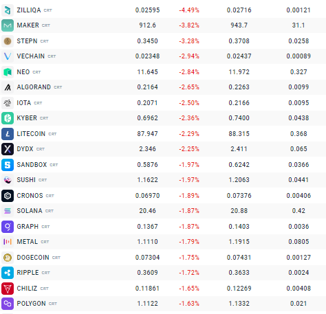 Weaker Bitcoin and Ethereum are being followed by altcoins. Source: xStation5