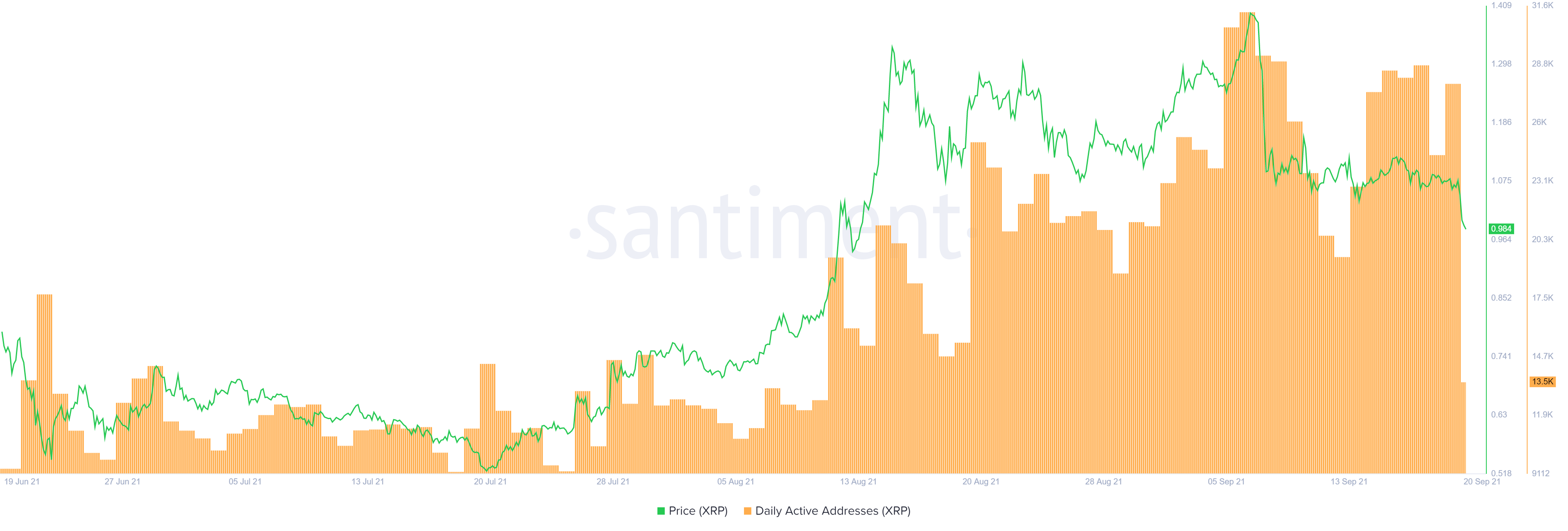 Number of daily active addresses fell sharply in the second part of September. Source: Santiment