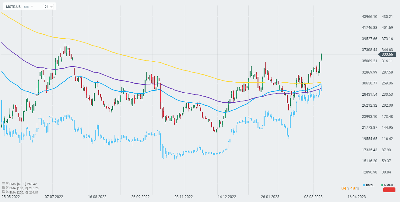 Correlation of the MSTR valentine and Bitcoin on the D1 interval. Source: xStation5