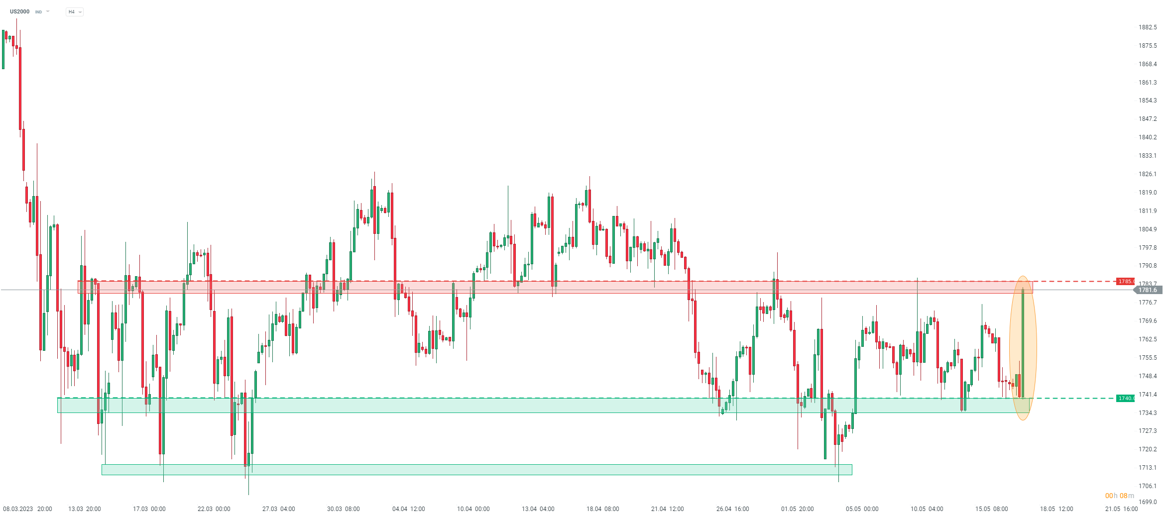 Russell 2000 (US2000) is the best performing Wall Street index today, supported by upbeat comments from House Speaker McCarthy on debt ceiling as well as solid performance of US regional banks. US2000 bounced off the lower limit of the ongoing trading range at 1,740 pts and rallied towards 1,785 pts resistance. Source: xStation5