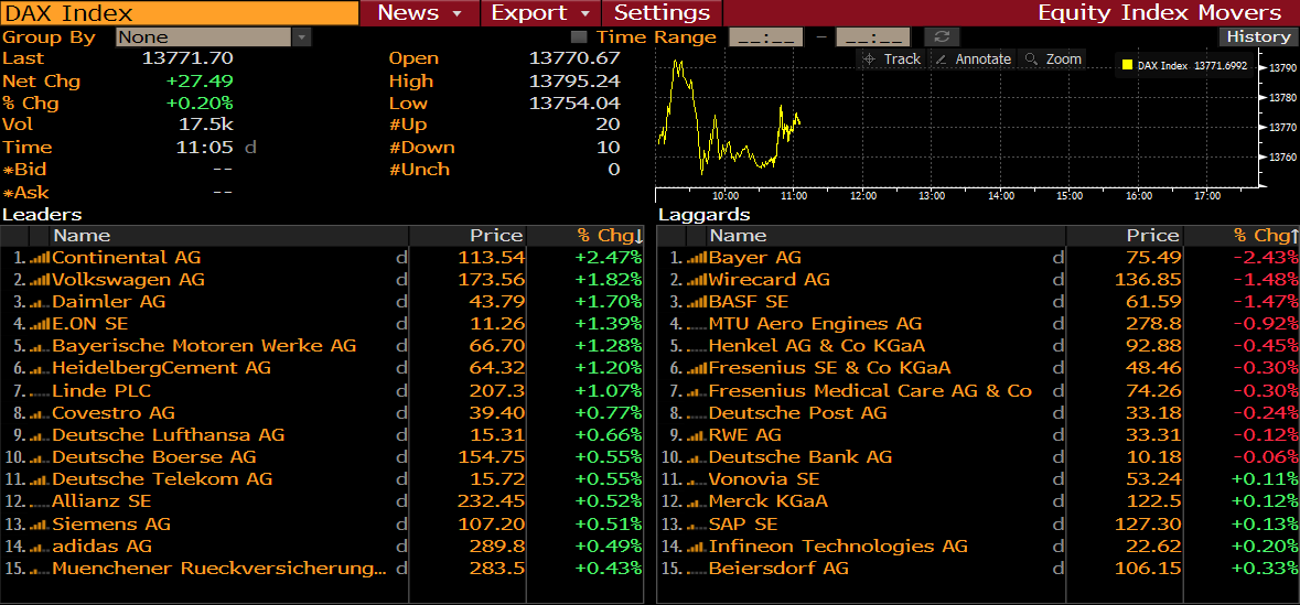 DAX tagok 10:05 GMT. Forrás: Bloomberg