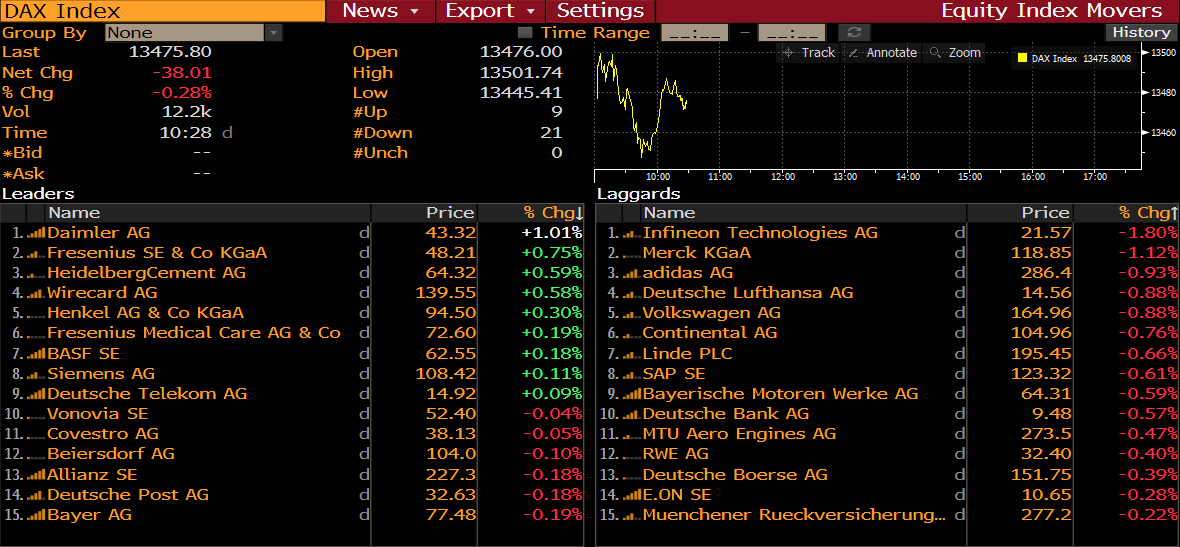DAX tagok 9:28 GMT. Forrás: Bloomberg