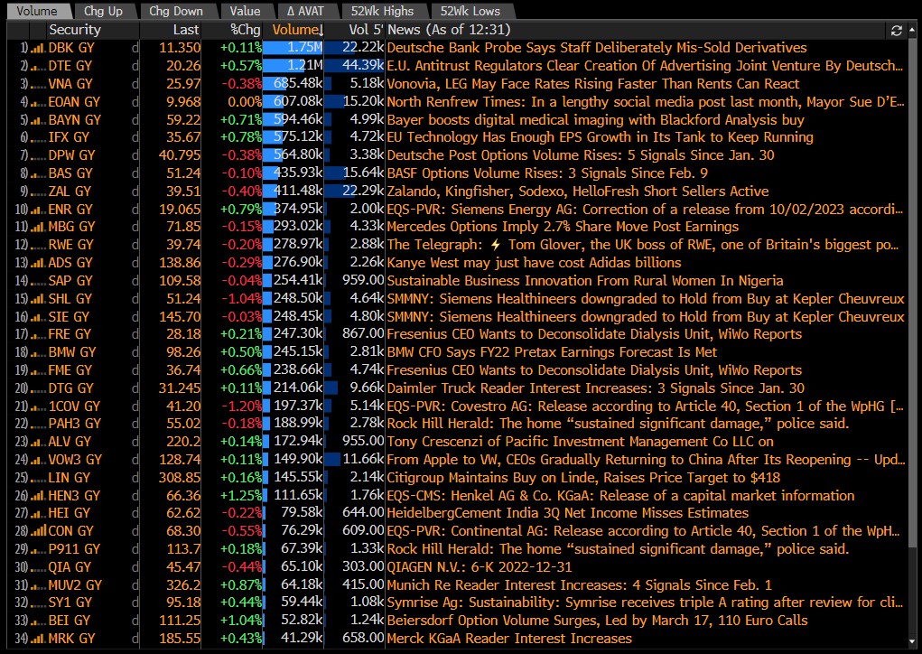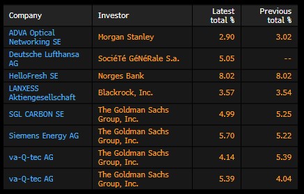 Changes in institutional holdings in individual companies of the DAX index (data from the last session). Source: Bloomberg