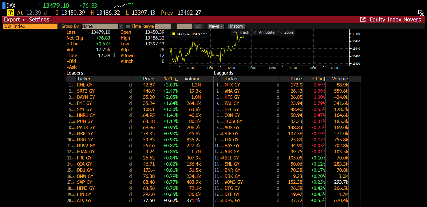 The most active stocks in the DAX index (DE30). Source: Bloomberg