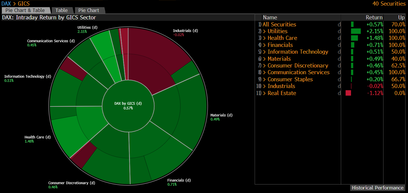 Largest percentage changes of companies included in the DAX index. Source: Bloomberg