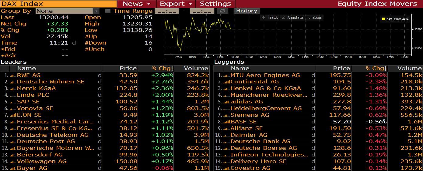 DAX members at 10:21 am GMT. Source: Bloomberg