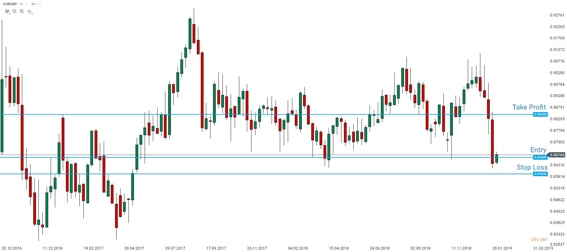 Thomson Reuters IFR long pozíció felvételét javasolja az EURGBP devizapáron, 0.8850 célárral és 0.8595 stop szinttel. Forrás: xStation5