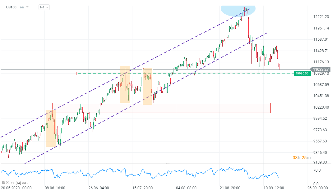 A befektetőknek figyelniük kell az US100 10930-as szintjére, ahol a bikáknak kétszer sikerült ellentámadást indítaniuk. Egy ilyen szintű törés meglehetősen gyorsan 10000 szintre terelheti a piacot.