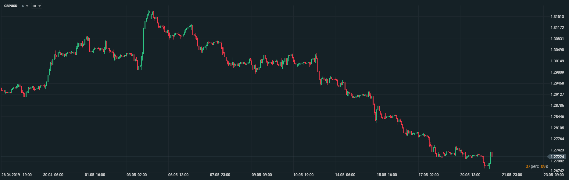 A GBPUSD folyamatosan csökken, és január óta az első alkalommal 1,27 alá esett. A befektetők idegesek, mivel a Theresa May megpróbálja meggyőzni a kabinetjét, hogy szavazzon a Brexit alku mellett, de már figyelmeztették a vámunió területén folytatott további engedményekkel kapcsolatban. A GBP lesz az egyik legérdekesebb pénznem amit érdemes figyelmemmel követni az euró parlamenti választások összefüggésében, ami most vasárnap lesz. Eddig a GBPUSD zsinórban 6. napja csökken.