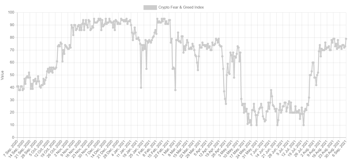 The Crypto Fear & Greed Index again reached “extreme greed” level. Source: alternative.me