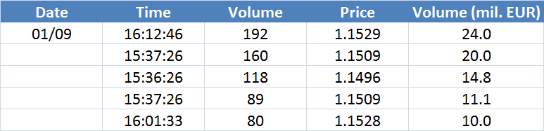 A legnagyobb volumenű tranzakciók az EURUSD devizapáron: