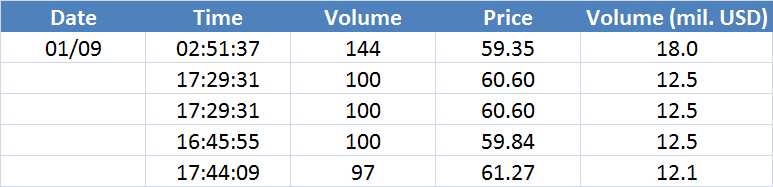A legnagyobb volumenű tranzakciók az OIL (Brent) instrumentumon: