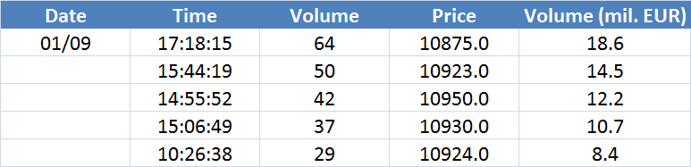 A legnagyobb volumenű tranzakciók a DAX részvényindexen: