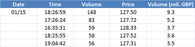 A legnagyobb volumenű tranzakciók a GBPUSD devizapáron: