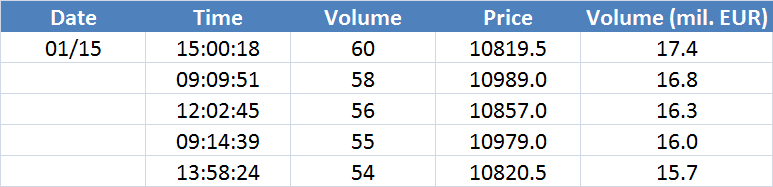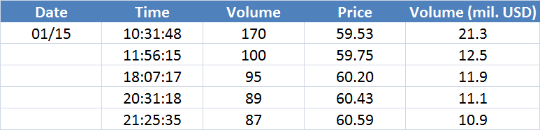 A legnagyobb volumenű tranzakciók az OIL (Brent) instrumentumon: