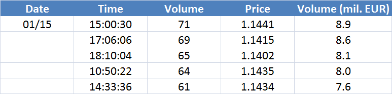 A legnagyobb volumenű tranzakciók az EURUSD devizapáron: