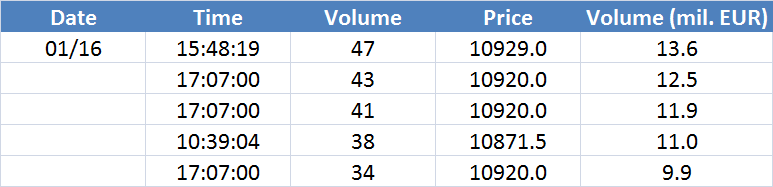 A legnagyobb volumenű tranzakciók a DAX részvényindexen: