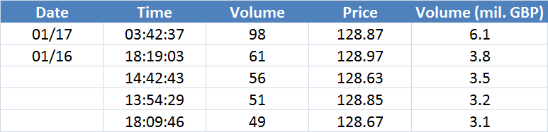 A legnagyobb volumenű tranzakciók a GBPUSD devizapáron: