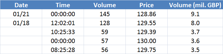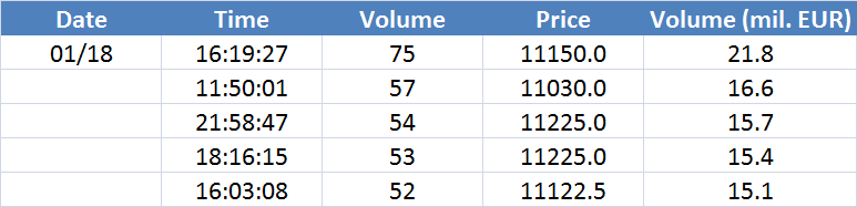 A legnagyobb volumenű tranzakciók az OIL (Brent) instrumentumon:
