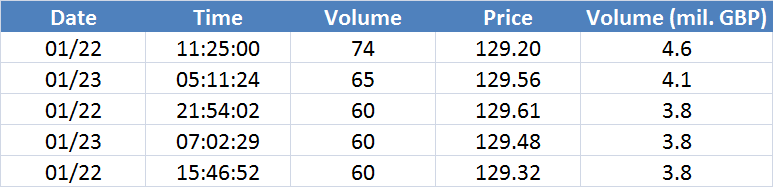 A legnagyobb volumenű tranzakciók a GBPUSD devizapáron: