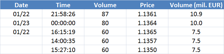 - legtöbb tranzakció az 1.1360 árszinten történt