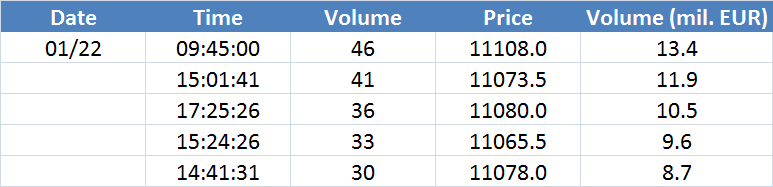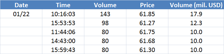 A legnagyobb volumenű tranzakciók az OIL (Brent) instrumentumon: