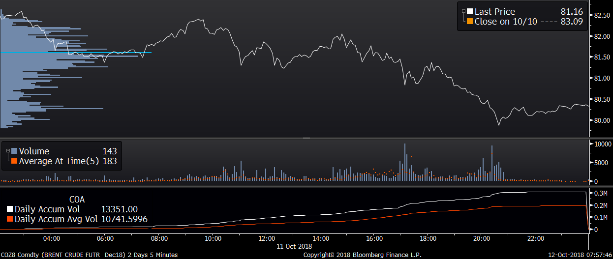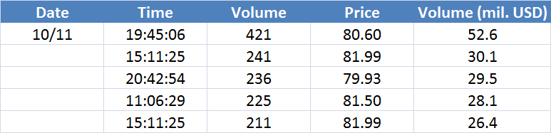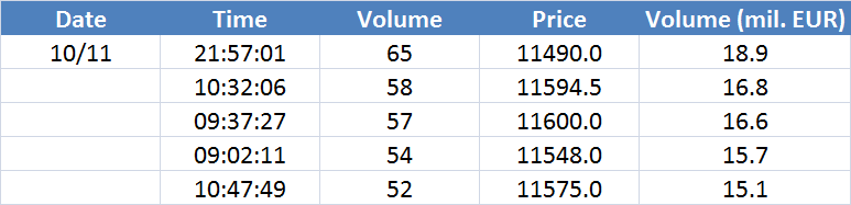 A legnagyobb volumenű tranzakciók az OIL (Brent) instrumentumon: