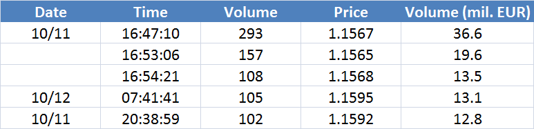 - legtöbb tranzakció a 1.1560 árszinten történt