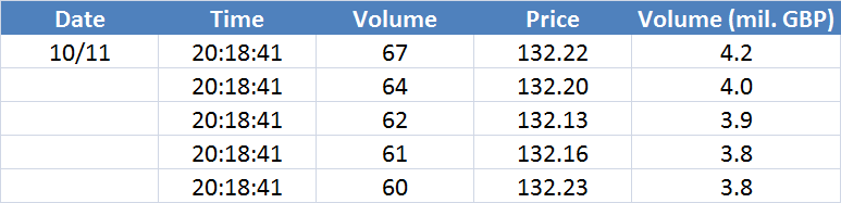 A legnagyobb volumenű tranzakciók az GBPUSD devizapáron: