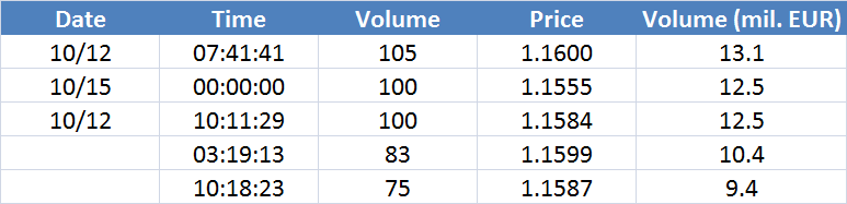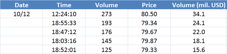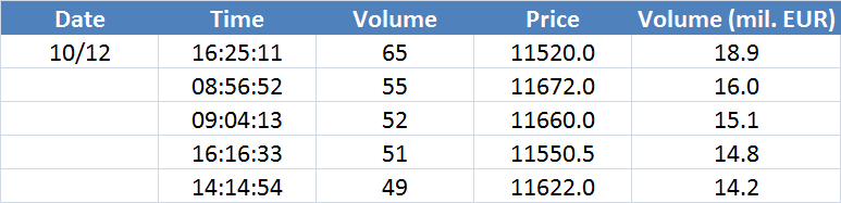 A legnagyobb volumenű tranzakciók az OIL (Brent) instrumentumon: