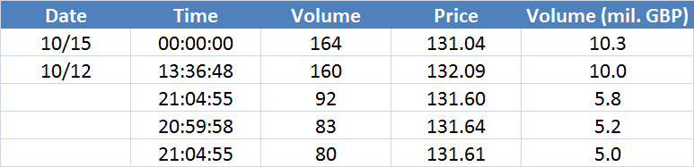 A legnagyobb volumenű tranzakciók az GBPUSD devizapáron: