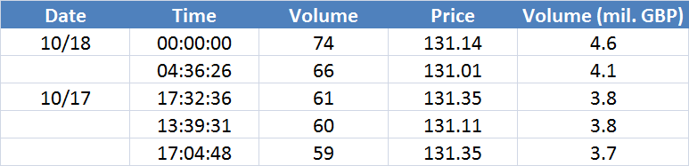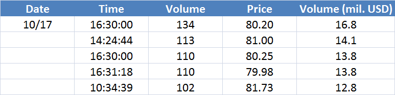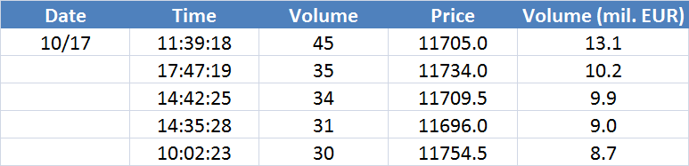 A legnagyobb volumenű tranzakciók az OIL (Brent) instrumentumon: