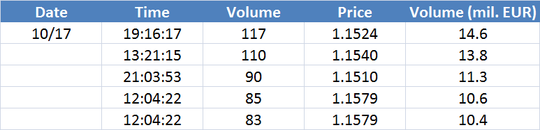 A legnagyobb volumenű tranzakciók az EURUSD devizapáron: