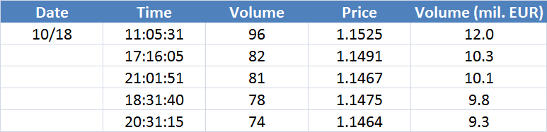 A legnagyobb volumenű tranzakciók az EURUSD devizapáron: